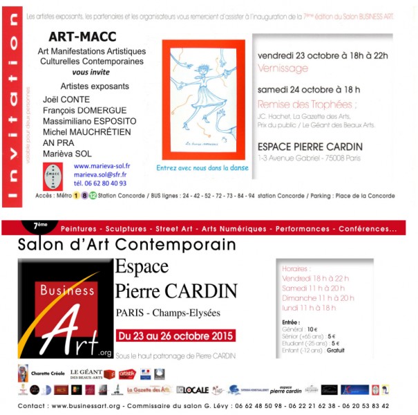 Du jeudi 20 au dimanche 23 octobre 2011 Marièva Sol exposait à L'Espace Pierre Cardin.