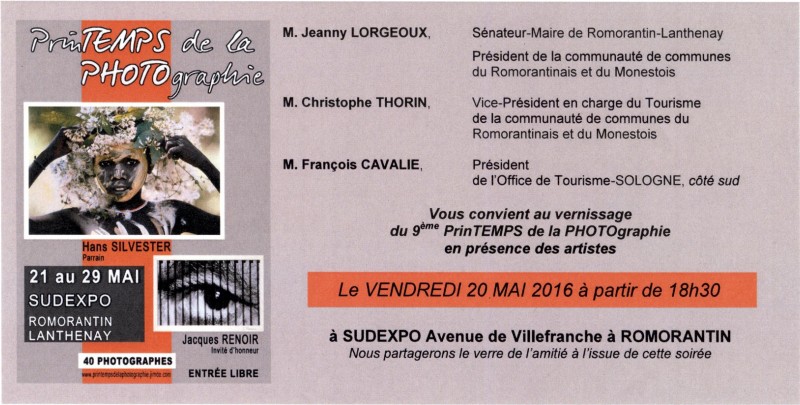 1) Le Prestigieux PrinTEMPS de la PHOTOgraphie de Romorantin du 21 au 29 mai, vernissage ce vendredi 20 mai.