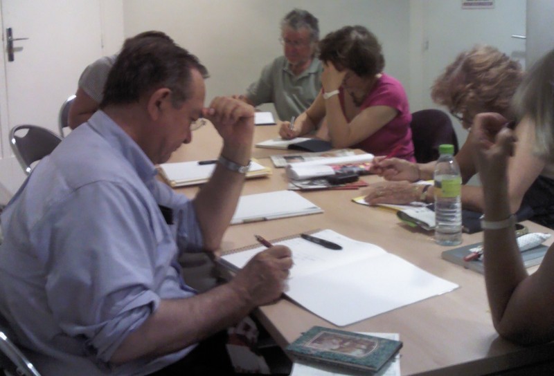 “Un bonheur n’arrive jamais seul”, dit-on, les ennuis non plus d’ailleurs, et comme l’aurait dit un ancien chef d’état : “Les emm....ts voyagent toujours en escadrille”. Nous avons vécu dans ces moments-là la LEM (Loi d’Emm....ts Maximum), car Bernard, qui devait animer l’atelier, était alité et fièvreux, et Michèle absente deux jours pour raison familiale. Après plusieurs échanges téléphoniques entre notre présidente et Alain Briantais notamment, c’estMarièva Sol qui a remplacé “au pied levé” et avec talent notre animateur habituel.