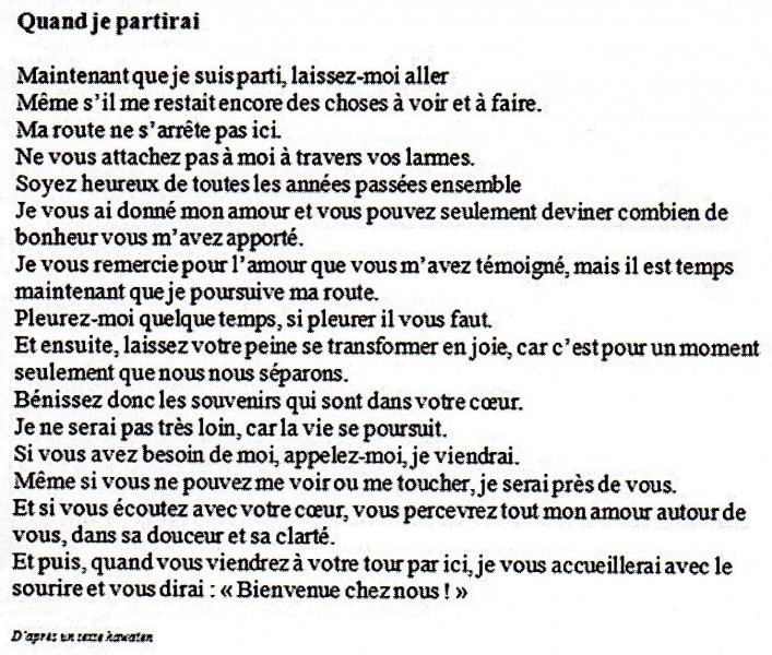 Quant à moi, entourée de sa paix, je ne pleure plus !