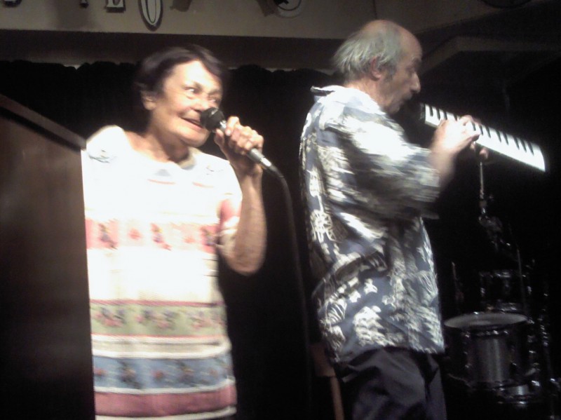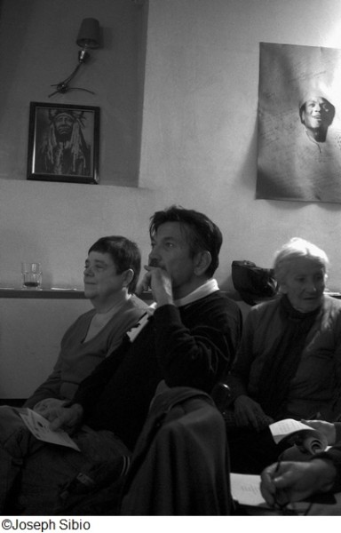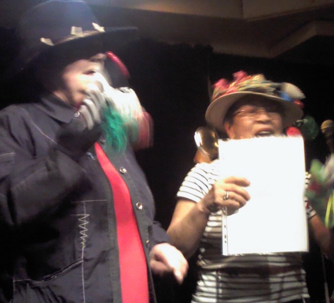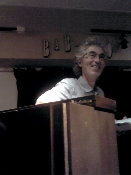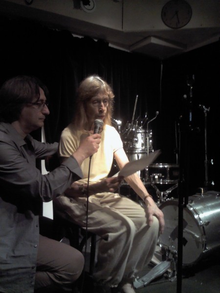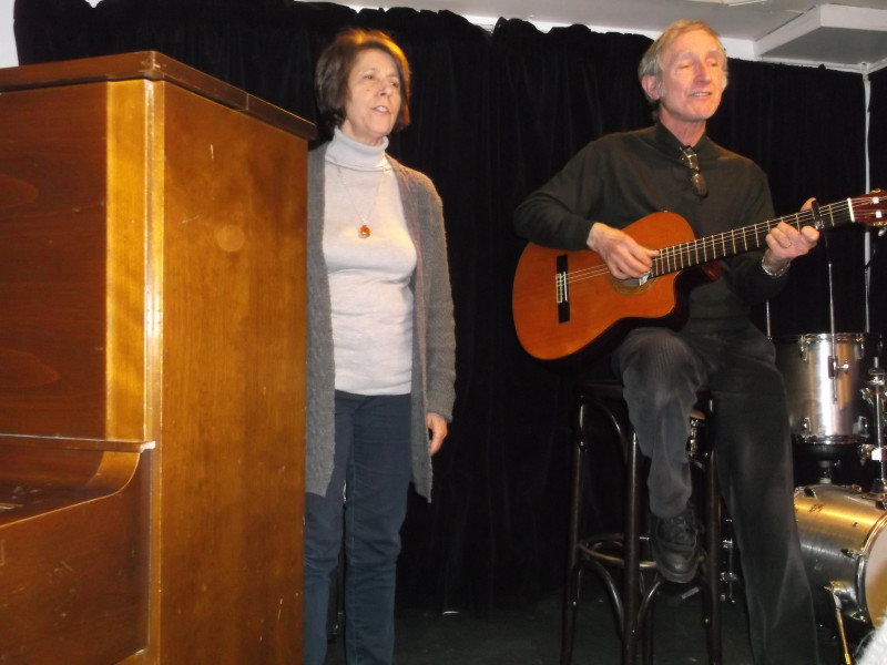 Puis, une surprise, et pas n’importe laquelle ! Franck et Claude Viguier sont passés nous voir, avec des amis, et leur guitare. Dans la région de Montmorency, ils éditent entre autres une revue de poésie, et participent à une émission sur Radio Enghien ; ils sont passionnés par tout et pas n’importe quoi : les idées. Ils nous chantent leurs Mots : « Sans les idées on serait nus, on n’aurait pas de chapeau, et un chapeau sans idées ça ne sert à rien ». « Sans folie, ça n’est pas gai, la vie ». On aime leur rythme et ce petit côté Bobby Lapointe. Un second titre, « cœur brisé » nous révèle une autre facette de leur style : le bruit de « petits marteaux qui résonnent sur l’enclume, le bruit d’un cœur qui se brise, qui s’éteint ». Applaudissements bien entendu !
