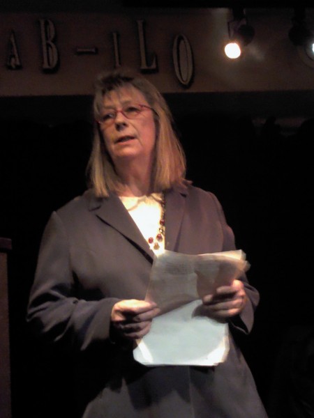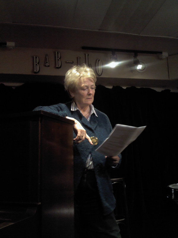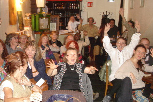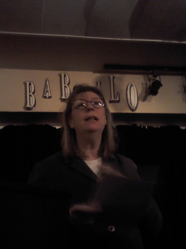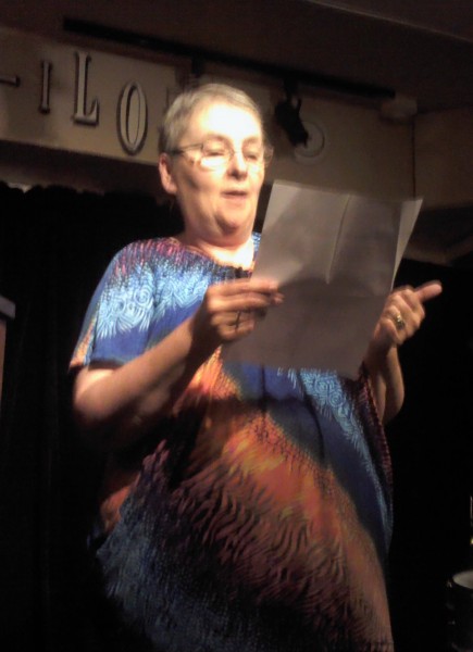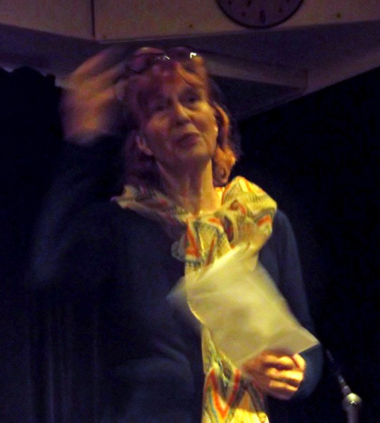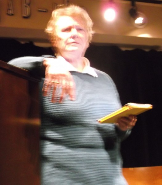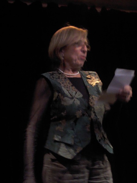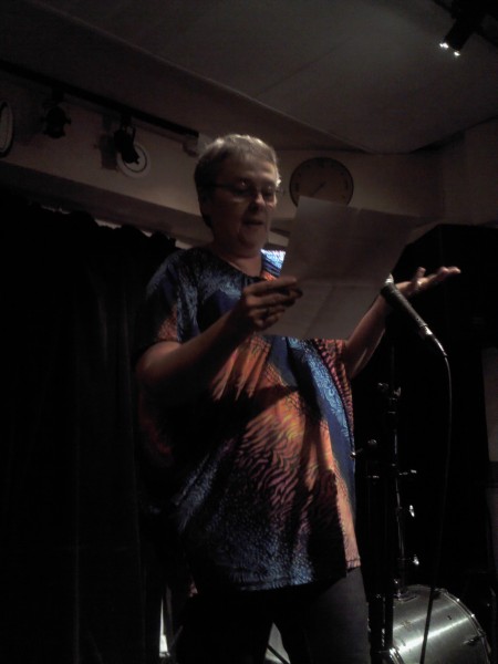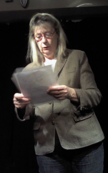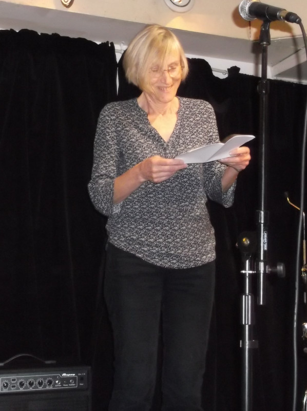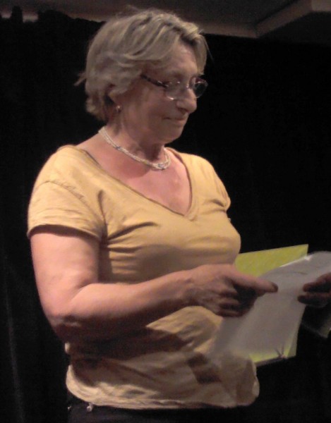 C’est qu’il s’en passe des choses en voyage ! Michèle m’a invitée à prendre la suite, donc , j’obéis, « et que ça soute ! », C’’est le titre de mon histoire ; je monte vite sur la petite scène raconter ce voyage mouvementé en soute à bagages, de Valoche et sa copine Valdingue béate devant le commandant de bord, de leurs conversations animées avec Ursule de la Valise, bourgeoise Vuitonnée, de la Valkyrie qui braille, et du Valepayer plutôt louche. La salle s’est bien amusée.