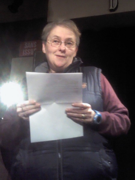 Cela dit, le « n’importe quoi » a tout de même contaminé la majorité des abeilles présentes ce soir pour notre première scène ouverte de l’année ! Claudine Vanlé, par exemple, en est ravie, pour elle « c’est une aubaine ce thème », elle qui « ne sait jamais quoi dire, ni sur le quoi, ni le pourquoi. »