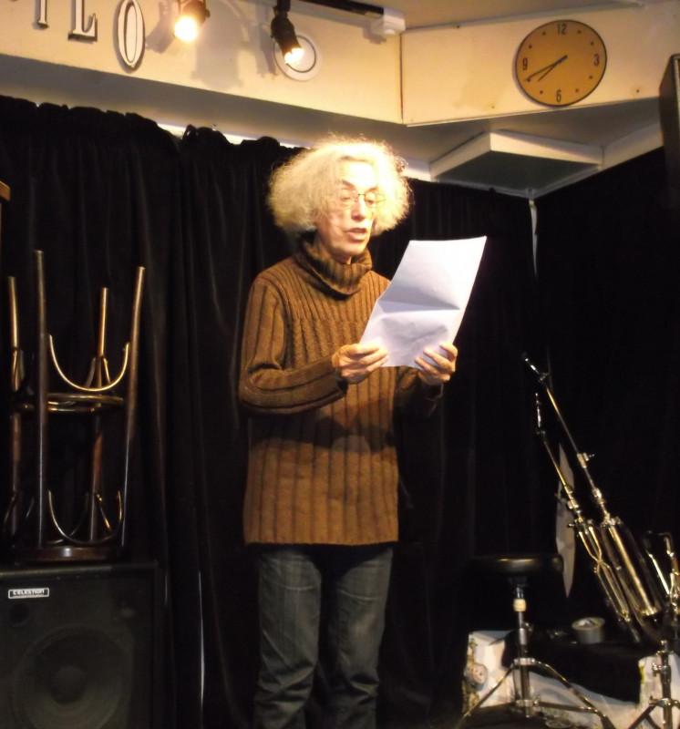 Et c’est encore du bonheur avec Pedro Vianna, qui nous dit un poème d’Eric Meyleuc, une histoire de « stupéfaction de la Méduse », et de « moutons qui se tricotent leurs propres rêves. » Puis c’est un texte court de son cru, extrait de son long poème « la place du pauvre », qui commence par « rappeler encore et toujours ». Son troisième texte très court nous rappelle que : « au bout de tout symbole, il y a toujours des êtres humains. » Merci Pedro !
