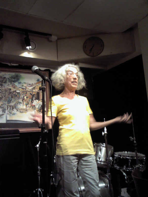 Qui donc ose désobéir ? Oguène, et en beauté. Elle parle de « ville lumière, de rayons magnifiques, d’arbres chenus… » A suivre ! Et voilà Evelyne Gautheron qui ose nous faire chanter avec Hughes Aufray : « Debout les gars, réveillez-vous ! » Vous vous souvenez ? La salle reprend en chœur, ravie.
