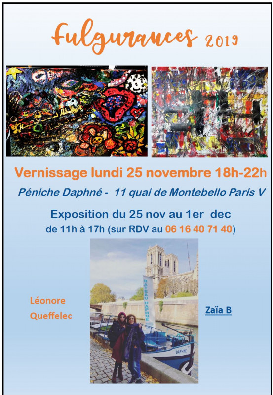 25/11 La Ruche des Arts vous invite au vernissage de l'exposition Fulgurances 2019, de Léonore Queffelec et Zaïa B Posté le 30/11/2019 - Par La Ruche des Arts, Michèle Lassiaz , Chr Sur le Feu de la Ruche