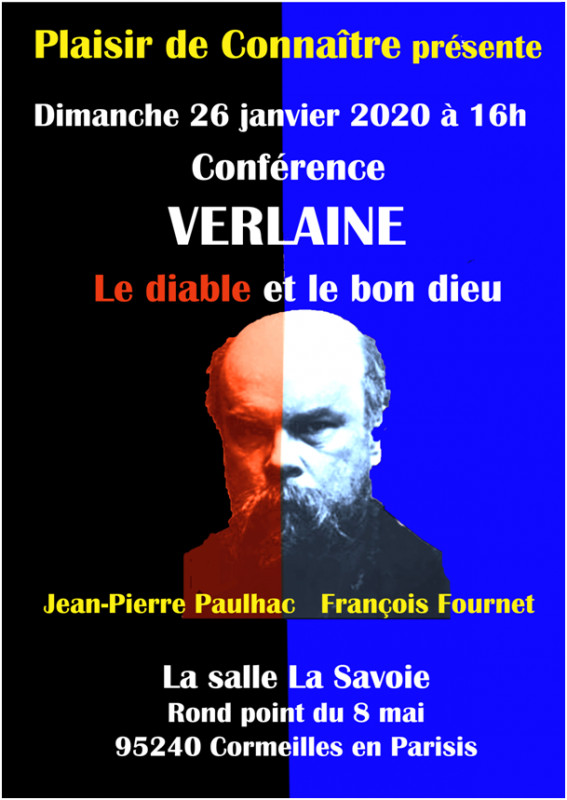 26/01 La Ruche des Arts vous annonce la Conférence sur la vie de Paul Verlaine-Le Diable et Le Bon Dieu Posté le 20/01/2020 - Par La Ruche des Arts, Michèle Lassiaz , Chr Sur le Feu de la Ruche