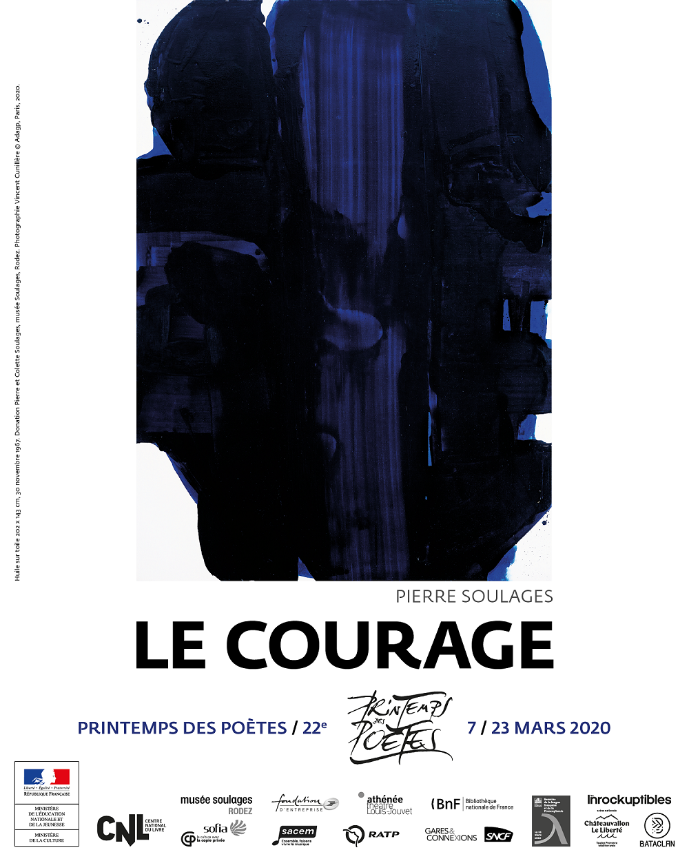 En choisissant Le Courage pour emblème de cette 22e édition du Printemps des Poètes, et un spectacle d’ouverture au Bataclan, j’avais pleinement conscience du pari risqué d’un tel intitulé. Mais j’avais toute confiance en la poésie, dès lors qu’elle sait tenir parole. J’invoquais à dessein l’étymologie du cœur, sans imaginer un seul instant qu’un virus couronné viendrait perturber le sursaut de nos vies.