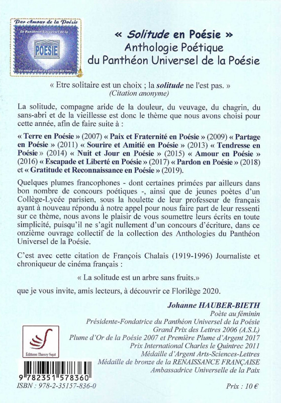 La Ruche des Arts vous annonce la parution de deux livres poétiques dont une Anthologie aux Editions Thierry Sajat Posté le 02/06/2020 - Par La Ruche des Arts, Michèle Lassiaz , Chr Sur le Feu de la Ruche