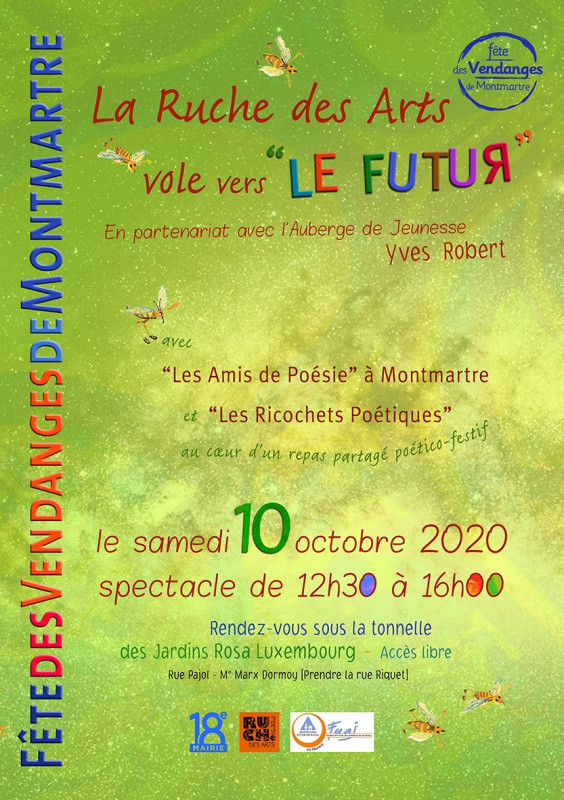 10/10/2020 La Ruche des Arts ne volera pas vers LE FUTUR à la Fête des Vendanges 2020 et en est désolée Posté le 06/10/2020 - Par La Ruche des Arts, Michèle Lassiaz, Alain briantais, Didier Laloux,Chr Sur le Feu de la Ruche