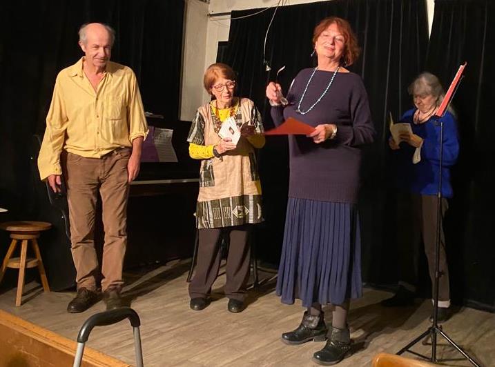 Avec grand plaisir, nous revoyons Colette Sauvanet, toujours élégante, interprétant plusieurs de ses charmants poèmes appréciés et applaudis avec la même ferveur que ceux publiés dans son recueil "Bulles" édité dans le Cercle des Poètes de la Ruche des Arts