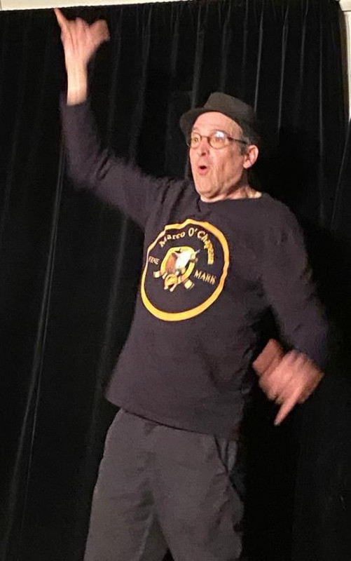 Yo Oh, Yo Oh, Yo Oh! c'est avec cet indicatif que se présente Marco O' Chapeau, lu; vu et entendu , artiste multiforme poète, comédien et clown, un peu décalé ainsi, qu'il se présente lui-même, sa prestation étant en soi, une vraie profession de foi (voir prochainement vidéo sur notre site) ... plutôt burlesque dans son ensemble son spectacle se situe entre ses différentes casquettes, pardon! Chapeau! Coup de chapeau donc à Marco O'Chapeau!