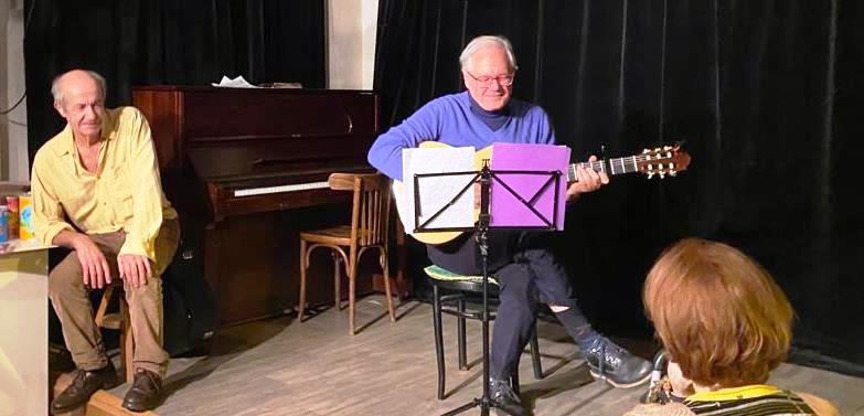 Retour à la chanson avec Jean-Pierre Déjou, qui nous accompagne en poésie très inspirée , autant qu'en chansons dont il est un fin connaisseur, depuis quelque temps; c'est ainsi qu'il peut expliquer l'histoire particulière de telle ou telle chanson, avec son ou ses créateurs, paroles , musique, interprètes et anecdotes, et comme en plus il sait les bien chanter, surtout celles de Jean Ferrat; écoutons le donc les interpréter en s'accompagnant à la guitare acoustique et réservons lui un tonnerre d'applaudissements. nous aurons plaisir à le retrouver dans une prochaine Carte Blanche, comme Zaïa et Bernard, et plusieurs autres présents lors de ce "Chaud" de la Ruche 2021 qui permet à tous (tes) de se retrouver fraternellement...
