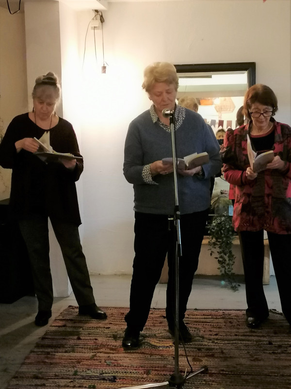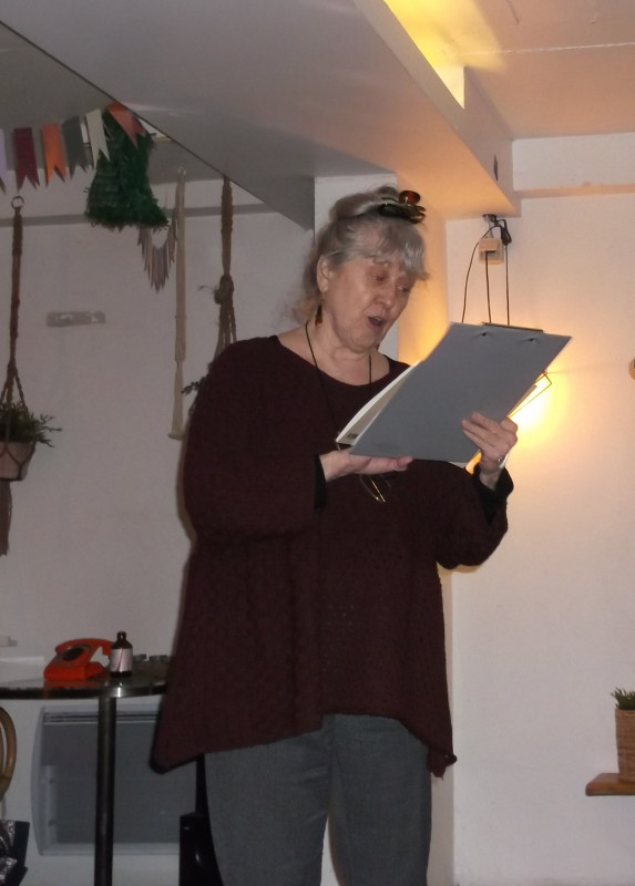 Pour terminer cette belle soirée, nous découvrons avec plaisir le recueil de Claudine Vanlé : « Croquises » avec une lecture à 3. Se succéderont ainsi notre Reine Michèle Lassiaz, Oguène, et Claudine, qui nous liront à tout de rôle « instantanés de la vie parisienne, bistrots, l’heure du thé, adieu l’ami, la complainte de l’amour, juste moi ». Un livre à se procurer, séance de dédicaces, et FIN ! Encore de beaux partages poétiques ce soir, avant que se produisent Zaïa et Bernard.