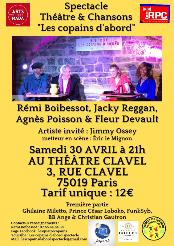 30/04/2022 La Ruche des Arts vous informe et transmet l'information:Les Copains d'abord au Théâtre CLAVEL Posté le 06/04/2022 - Par la Ruche des arts, Michèle Lassiaz,Al Briantais, Chr lafont Sur le Feu de la Ruche