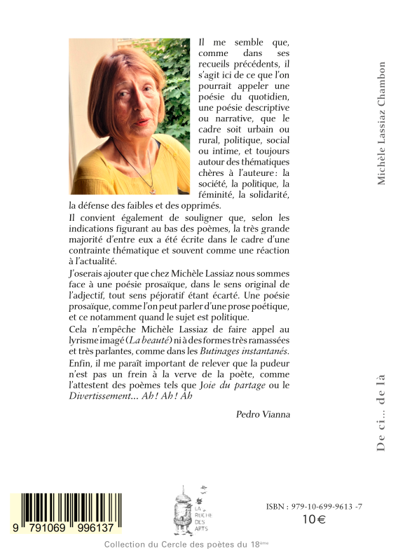 Edité par la Ruche des Arts, dans sa collection du Cercle des Poètes, ce recueil de poèmes présenté à l'occasion du Printemps des Poètes 2023, est disponible et proposé pour la somme de 10€ + 2,50 € de port si nécessaire