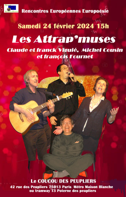 24/02/2024 La Ruche des Arts vous annonce et relaie l'information Claude et Franck et François au Coucou des Peupliers à Paris 13ème Posté le 23/02/2024 - Par La Ruche des Arts, Michèle Lassiaz,Alain Briantais, Christian Lafont Sur le Feu de la Ruche