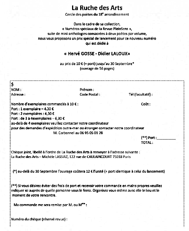 Souscription au PleinSens Spécial n° 3 de la Ruche des Arts, dédié à Didier Laloux et Hervé Gosse Posté le 05/10/2024 - Par La Ruche des Arts, Michèle Lassiaz,Alain Briantais, Christian Lafont, Serge Carbonnel Sur le Feu de la Ruche