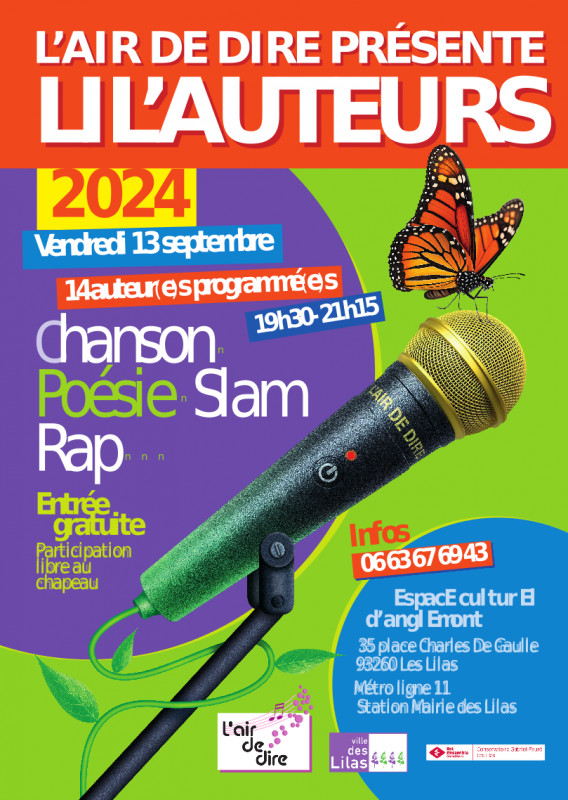 13./09/2024 La Ruche des Arts vous annonce et relaie l'information Lilas Scene Ouverte par L'Air de Dire aux Portes de Paris Posté le 09/09/2024 - Par La Ruche des Arts, Michèle lassiaz, Alain Briantais, Christian Lafont Sur le Feu de la Ruche