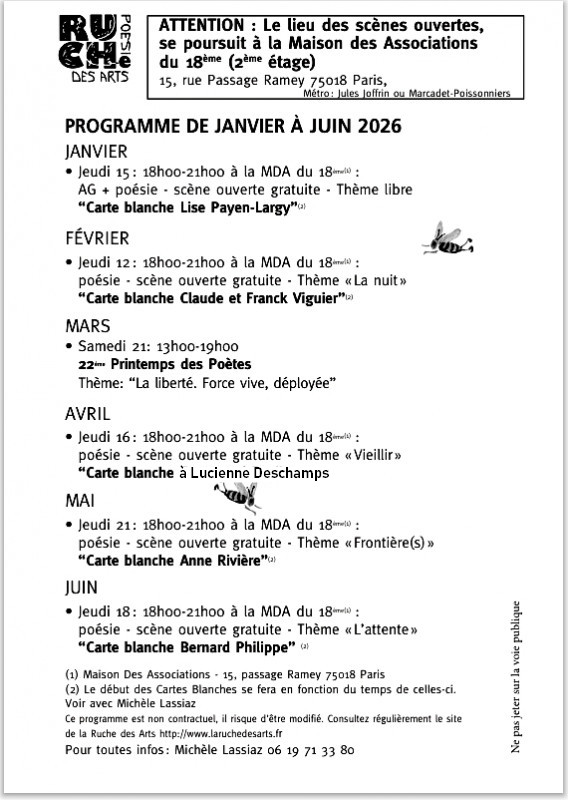 12/02/2026 Scène Ouverte Poétique de la Ruche... Le 06/03/2026 0 réaction
