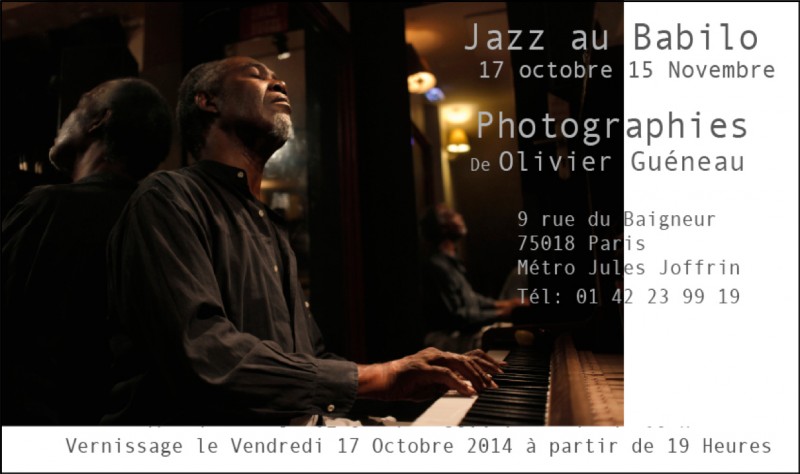 "Olivier Guéneau, grand directeur de la photo, à la filmographie très étoffée, expose au Bab’ilo des clichés sur l’univers du jazz. De cette partition intuitive créée par l’œil du photographe, naît une certaine poésie des ombres et des lumières."