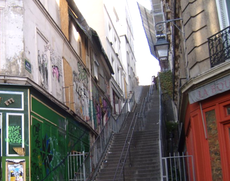 Si vous arrivez par le M° Abbesses, c’est une rue qui monte et zigzague ( rue Vieuville )